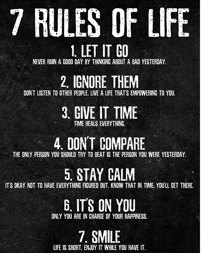 Today I’m going start the blog with some words of encouragement to lift you up and then give you seven rules to live by.