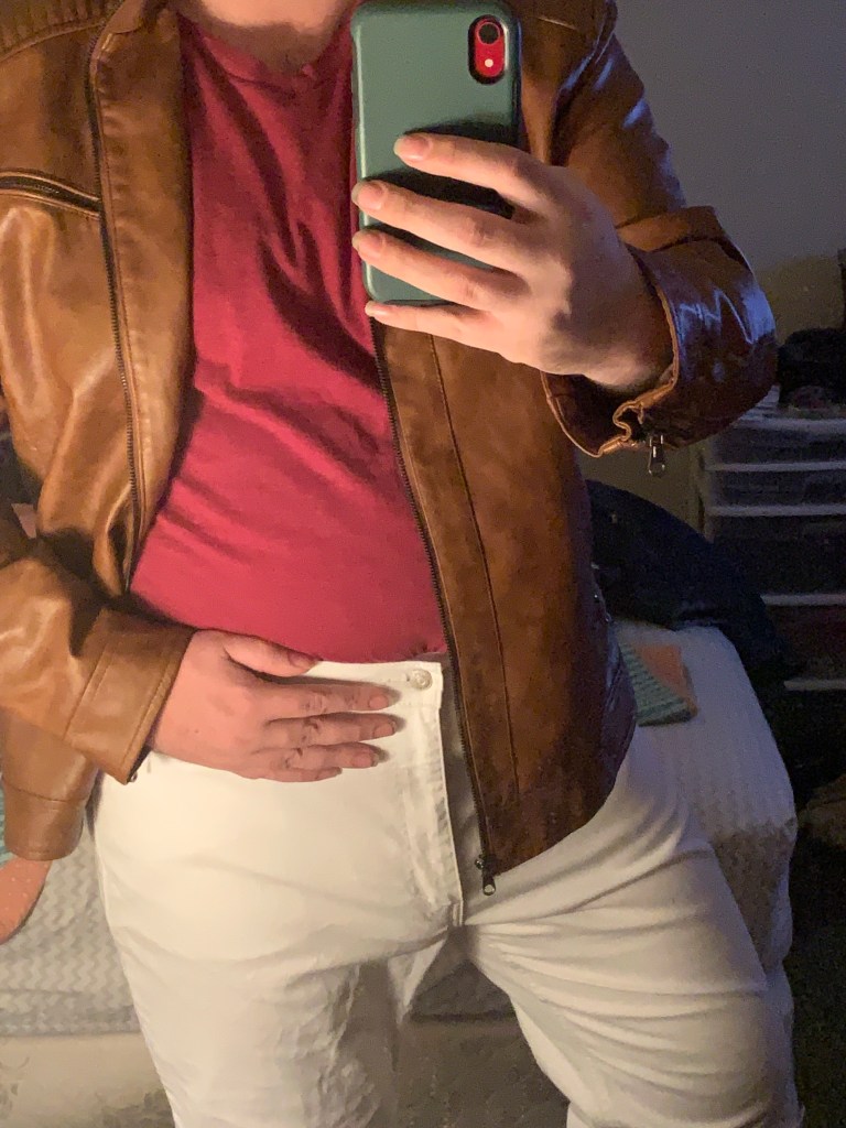 A little later tonight I’m going to do some mirror selfies because I’m mixing and matching some V-neck tops with my white pants. That’s why this blog will be out after 7. I’ll attempt to get the Stylish DTM pose in there too.