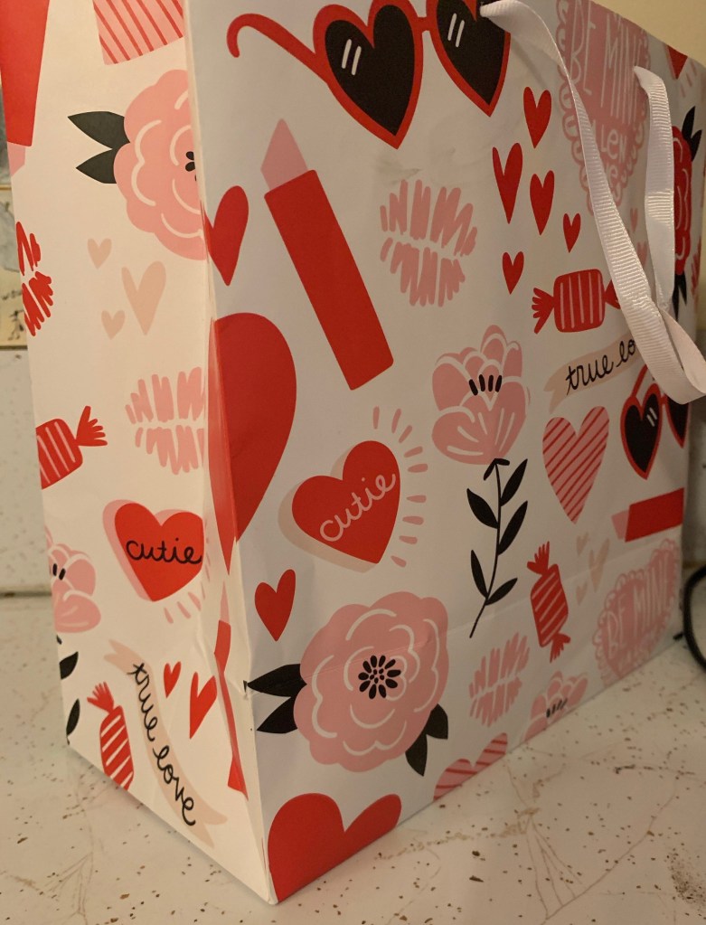 No Valentine’s Day is complete without candy or chocolate 🍫 🍭. On one of my Target runs, I came across a great deal. 3 for $8 on assorted candy. I also picked up some Dove chocolate. To hide it from little kids, I put it in this sweet gift bag I saved from a year ago when I gave my coworkers their Valentines Day chocolate.