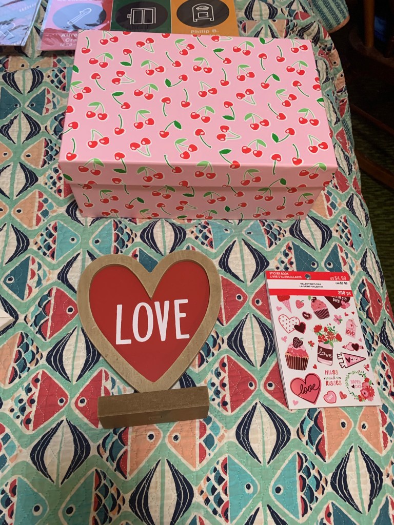 Finally, let’s talk about my Stylish Valentine’s Day haul. I started it by shopping at Michael’s on my way home from work. I bought some decor to make my place stand out. While February is all about this special holiday, it also stands for Black History month. Here’s the first fruits of my Valentine’s spree. How sweet is that cherry print photo box?