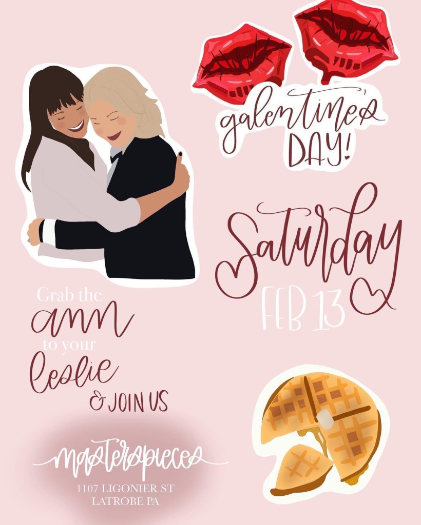 Also that day, Masterspieces in downtown Latrobe will be hosting an exciting event. Mark your calendars to TREAT YO SELF! Courtney will be hosting a Parks & Rec Galentines Day event. From what I’ve heard so far, the event is going to be a blast! Not only will the shop have limited edition Masterspieces Parks & Rec themed goods, there will also be special guests @bite_confections, @christinaelizabethconfections & @withlovecharcuterie ! Who doesn’t love charcuterie or confections on Valentine’s Day?