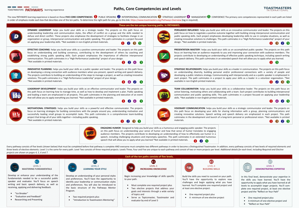 That concludes this Pathways blog. For some, it’s a fresh start. For others, they may have mixed feelings. It all depends on how you go about it and how you can adapt to change. If you’re a longtime toastmaster, raised on the traditional education, you may have some growing pains and opinions on the new program. If you’re just getting started you may see how fun the new package is and teach a thing to our veterans.