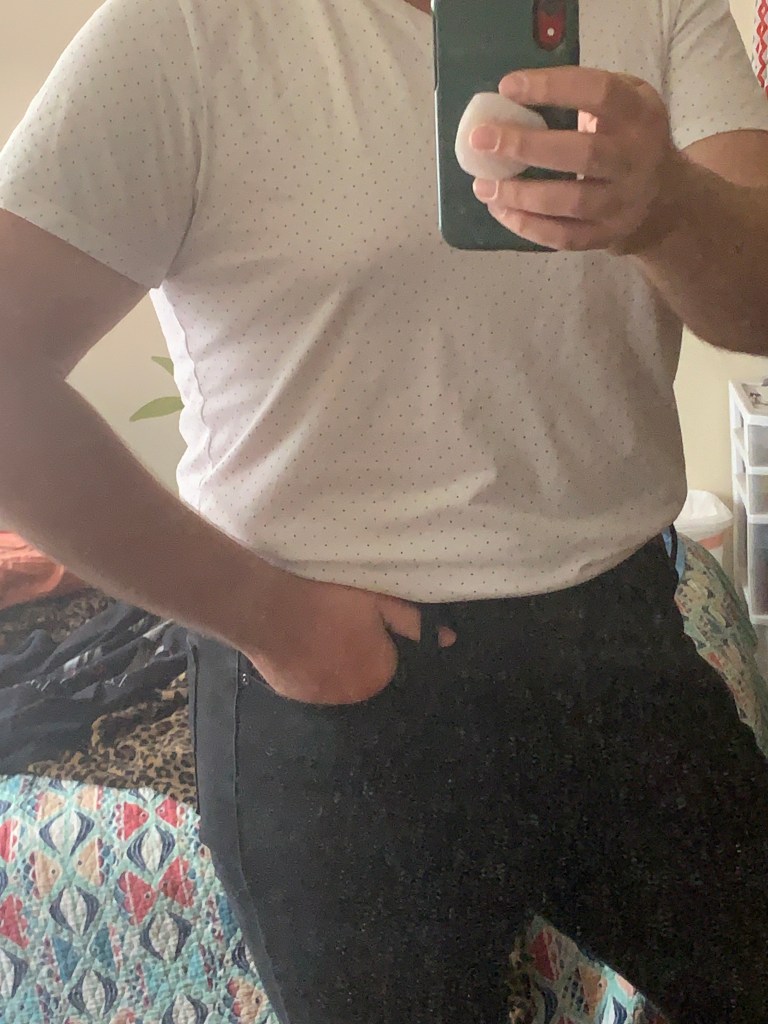 I’m thinking you can wear these for a coffee date at your favorite local cafe or, a Toastmasters meeting (online or virtual). Any combo I just mentioned will work. I’d pair the black and white with a jean jacket.