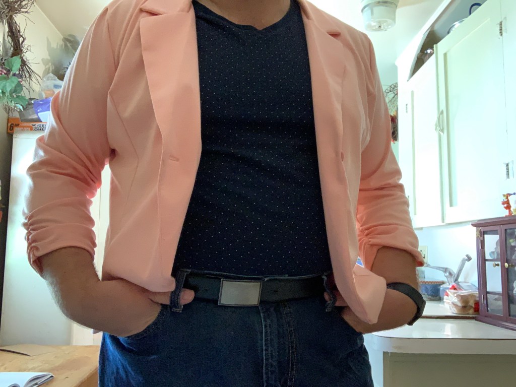 I just ordered these two pastel blazers recently and took a few pictures with them. I’ve been getting a lot of likes on the mint blazer but the peach is just as nice. Eventually I’ll go to a store and buy stuff this fashionable. Like Sara tells me, “Don’t be embarrassed. Be proud. Fashion is nothing to be ashamed of.”