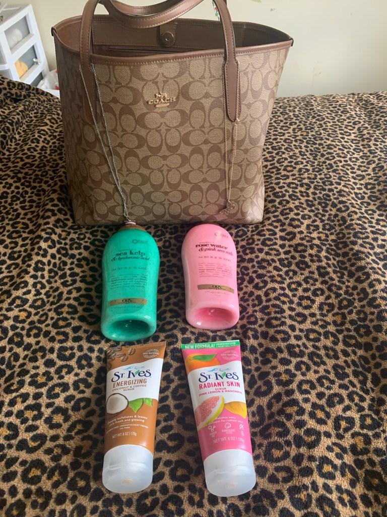 I’m stocking up on body wash. I like this stuff by OGX that I’ve bought on Amazon but now I’m starting to buy it in store. Right now I use the coffee coconut 🥥 body wash. I bought the sea kelp scrub as well as rose water and pink sea salt body wash to use for future spa 🧖♀️ or shower 🚿 days. I continue to wash my hair with the tea tree mint shampoo 🧴 and conditioner. I got hooked on this after they used it on my hair at Sport Clips.