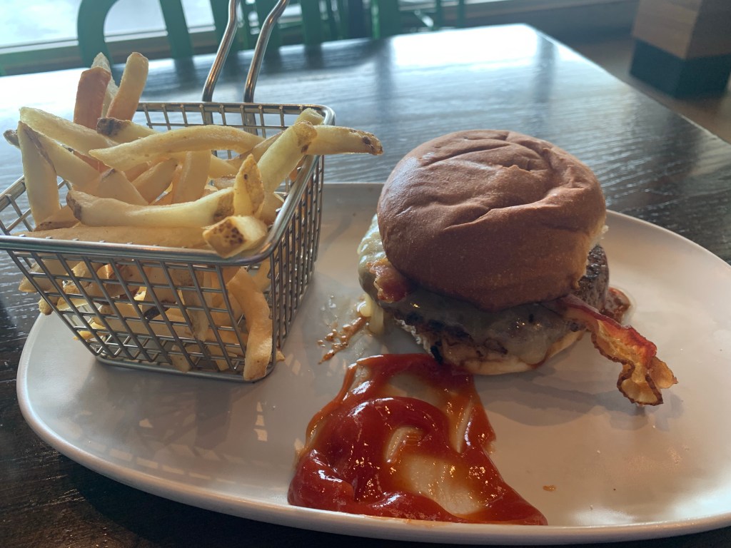 The food was slightly above average. I loved the basket that the fries came in. The burger I ordered was “Donnie’s Choice”, a BBQ burger with white cheddar, jalapeños, barbecue sauce, bacon, and avocado spread. The flavor was there (I didn’t really taste the avocado spread though) but the portion size was a little small compared to my last couple of meals (the fish sandwich at NPL was hard to top as well as the Reuben from Morelands). We’re all due for a letdown sometime. I also the fries could have used some seasoning salt (like Red Robin). I give the food a 6.5/10. Taste was great but size was fair.