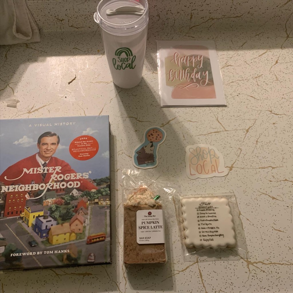 One year ago was the opening of the cutest little gift shop in downtown Latrobe known as Masterspieces. During that four day stretch, I had the opportunity to attend one of the grand openings. I came away pretty nicely with some good buys and made some new friends along the way. I really loved that Mister Rogers Neighborhood book and really learned a lot about the show. I also loved that Shop Local tumbler. Also, how sweet were those Wolf and Whisk cookies?