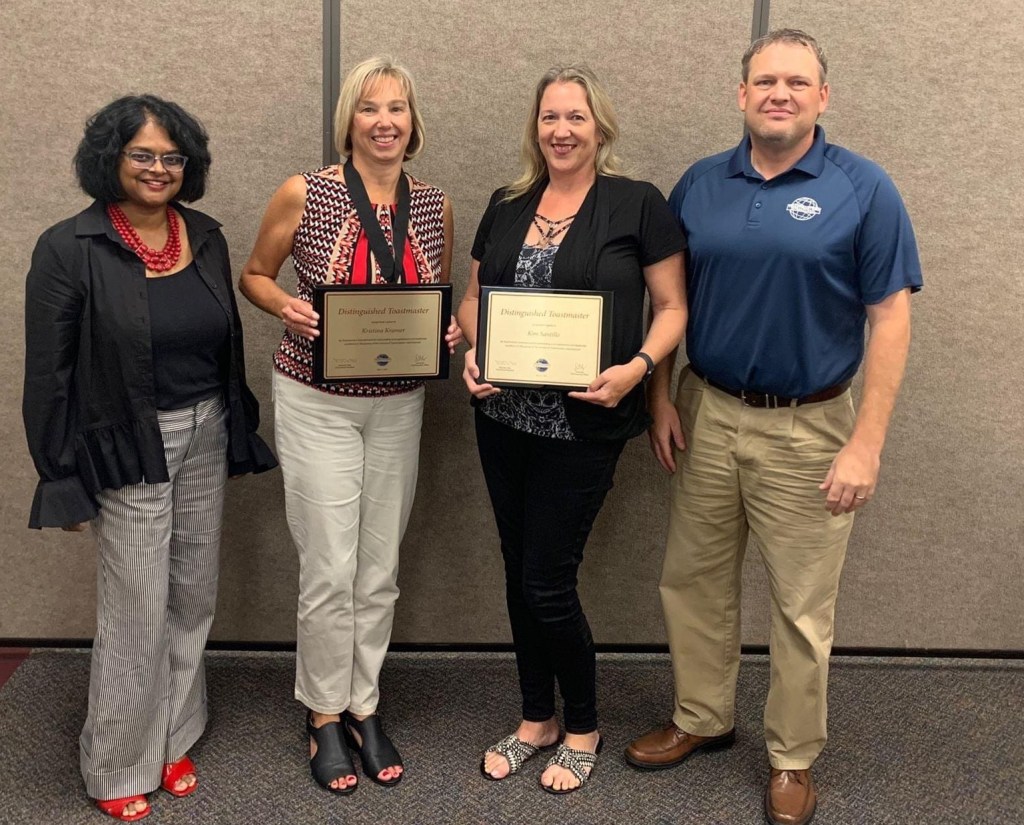 On Monday at the Cranberry High Noon meeting, Toastmasters Tina Kramer and Kim Santillo were honored with their Distinguished Toastmaster awards. What a crowning achievement for the hard work these two have put in during their Toastmasters journey. It’s also a crowning achievement for the Cranberry High Noon club which now has nine Distinguished Toastmasters. Since its inception in 2013, the club has achieved the high honor of being Presidents Distinguished every year and I have no doubt this upcoming year will be no different. The members are always supportive and it’s not surprising how successful this club is.