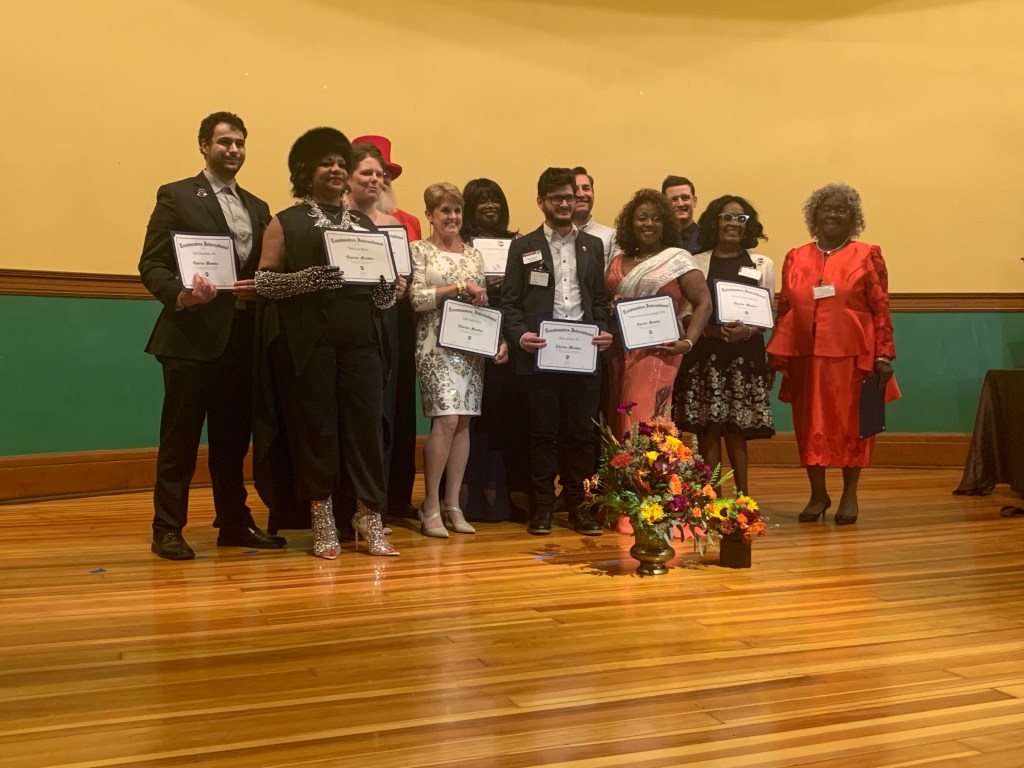 Finally after a year has passed and our conference was cancelled due to Covid, that I was able to run the gauntlet with the other Distinguished Toastmasters. In addition to that we got some great pictures in front of the โred carpetโ, disco danced to some great tunes that our DJ Tyler Crummy played, and got sent outside when the fire alarms went off. The dancing went on even as we made our way outside.