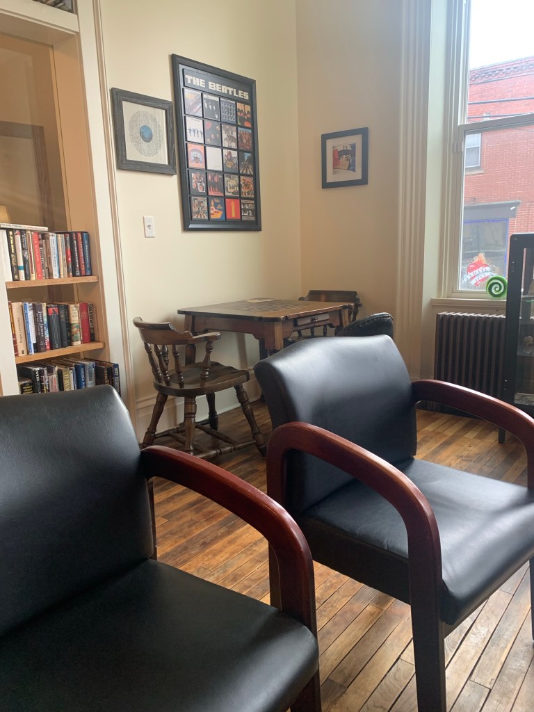 I had my coffee indoors this time because it’s winter despite the mild weather this afternoon. All I had to say was that it was a fun, relaxing experience. It feels like home with all the books on the shelf and a spot to play chess. Lots of classics as well as local authors. They had my Mister Rogers book that I bought at Masterspieces during its grand opening as well as other books that my Gram owned.