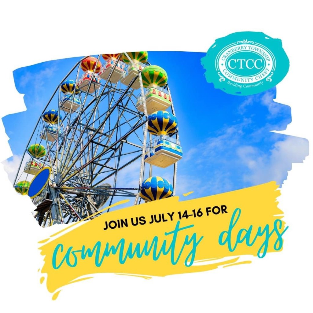 Cranberry Community Days will be held next Thursday, July 14, through Saturday, July 16, at Cranberry Community Park, located at 111 Ernie Mashuda Dr., Cranberry Township, PA 16066. Hours of operation will be Thursday from 4-10PM, Friday from 4-11PM, and Saturday from 1-11PM. Cranberry Community Days is a big draw for the area with over 32,000 in attendance, providing enjoyment for children of all ages, adults and senior citizens. Enjoy FREE Parking, FREE Admission and over 200 VENDORS!