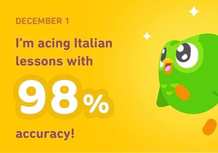 Maybe our New Year’s resolution is to take up a new skill, or learn a foreign language. For me, that New Year’s resolution came three months late when I started learning Spanish on the Duolingo app. It became a habit and now, I’m skilled in learning not one, two or three, but four different languages. What started with Spanish (which is on hiatus right now) has turned into French, Italian, and even German. I try to do a little bit every day to keep up my streak and my standing in the prestigious Diamond League as I try win the tournaments every week.