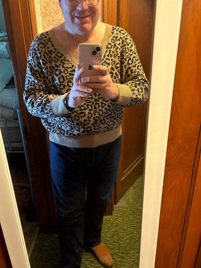 I bought cheetah print tops from Old Navy and throughout October, I confidently wore them and got compliments from family and friends. At home, I overthink and worry about what will be said but that shouldn’t really be an issue. I wore my t-shirt to dinner with Mr. Clougherty, my sweater at the reunion, and my cardigan to the Fall Symposium. Maybe one day I’ll wear them all at home with joy and without feeling ashamed.