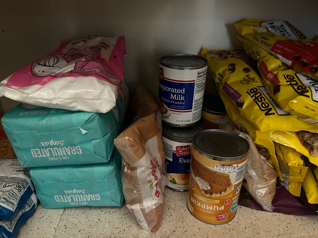 Speaking of holiday baking, let’s talk about this shelf in my mom’s pantry cupboard. Giant Eagle had great deals on baking supplies last week; therefore, Mom took advantage of the sales and loaded up for the cookie rush. I can’t wait to see what she has in store. I’m sure it’ll be the usual (thumbprints, red devil’s food, etc.) with a few new creations in store. I’ll be making my Elf sugar cookies in a few weeks as well. Speaking of Buddy the Elf, happy 20th anniversary to this iconic holiday movie which is in good company with others for G.O.A.T. (Greatest of All Time).
