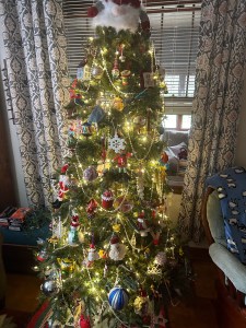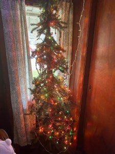 I woke up Saturday afternoon to see the trees decorated in the living room and out front. Throughout the weekend, Dad took advantage of the dry weather to put up lights outside. He programmed the timer that activates the lights at a certain time and keeps them going for however many hours. He did the same for the lights going upstairs. By the end of the weekend, the house was looking very festive.