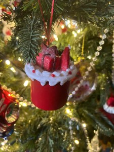 The day after Thanksgiving for my family is traditionally the day we like to get the decorations out of the attic. We form an assembly line and get all the boxes stored in the kitchen or downstairs. Black Friday is the day that we put up our Christmas decorations and we continue throughout the weekend. Mom has Christmas pictures of Annabelle that she puts up on the table as well as her many snowglobes. I added my nutcracker to the table this year, and my peppermint mocha ornament to the living room tree. Go for it, it is peppermint, gingerbread, and egg nog season!