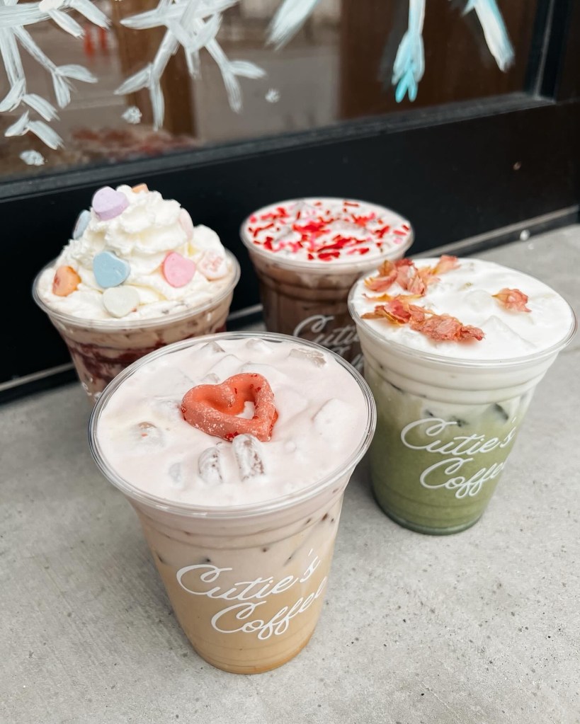 Cutie‘s has a Valentine’s Day themed drinks right now. They had an Elf-themed flight over the holidays to celebrate the movie’s 20th anniversary. I don’t know if you drink these on your own or with a friend but coffee flights sound like a lot of fun. Future flights include a St. Patrick‘s Day 🍀 flight and, don’t quote me yet but, possibly an Eras themed flight for all you die hard Taylor Swift fans.