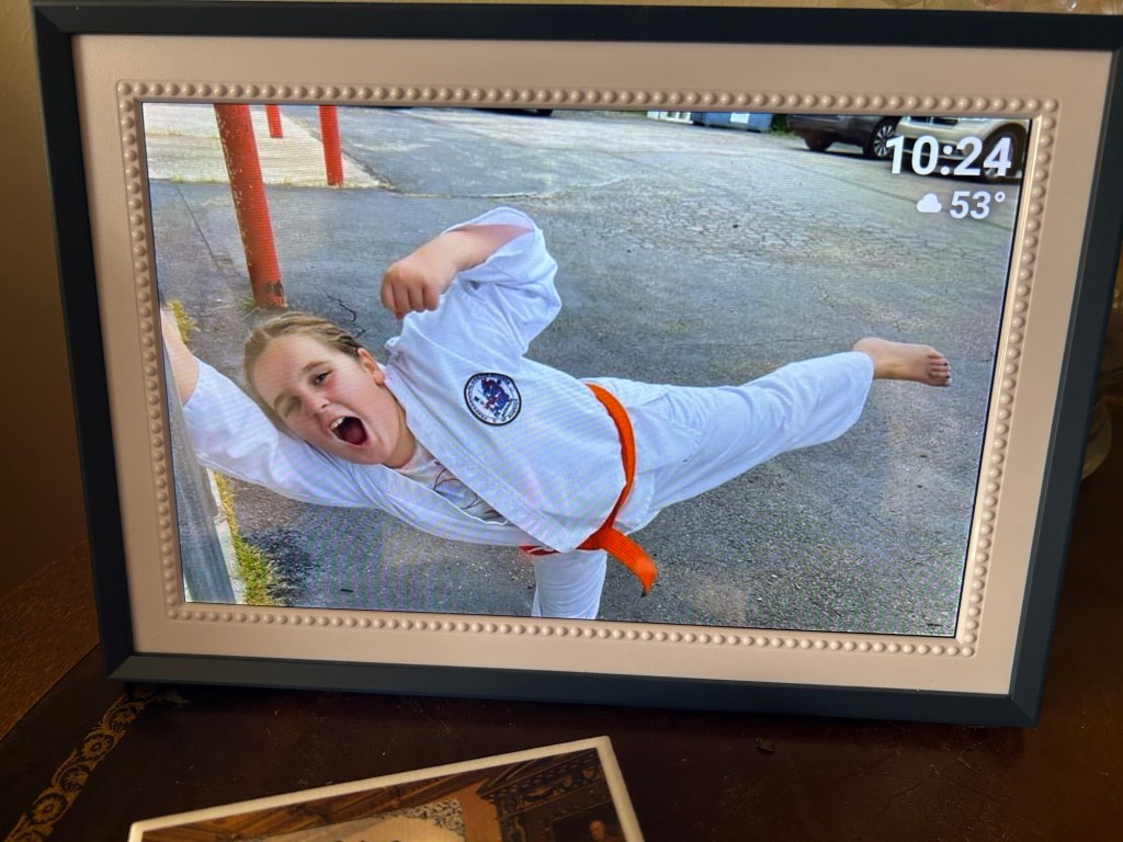 I spent part of my downtime Wednesday night figuring out my new toy. It didn’t take too long and I was able to get about 25 pictures up with more coming soon. My mom and I rearranged the room so it would be easier for me to work on my content. The frame sits on my desk next to my laptop. My pics are mostly from the latter part of 2023, including some holiday pictures. While Mom’s pictures are great family memories, mine are also going to be family. But I also have food and fashion pictures, as well as a few from Toastmasters events.
