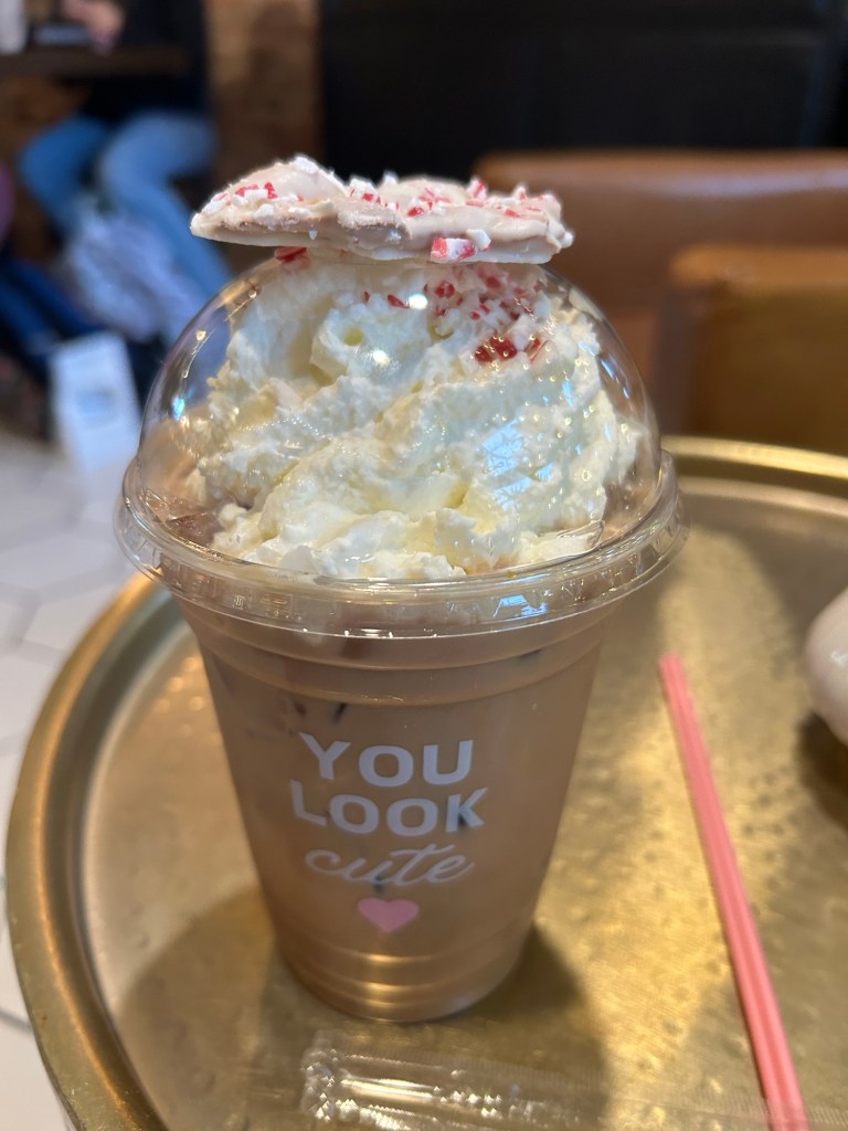 Sunday, I returned to Cutie’s and ordered a Frosted Gingerbread Latte. I got my drink and went home so I could show my mother the little cookie that came on top of my iced coffee. Yes, I got both of these drinks iced. Friday’s Peppermint White Mocha Pretzel drink came with a white chocolate pretzel garnish. Both coffees tasted good and were crafted very well. Greensburg has the best coffee shops and Cutie’s has the cutest coffee flights. It’s Harry Potter and Cindy Lou Who season if you want to try one.