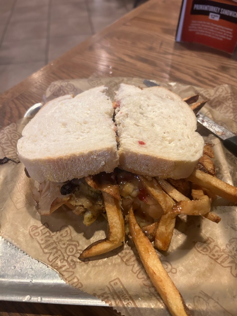 This past weekend I continued my sampling of delicious fall features. Thanksgiving and Christmas came together on this seasonal mid-November weekend as I enjoyed the holiday coffee at Cuties. Also, I’m still not sure what the #1 turkey sandwich or feature will end up being.