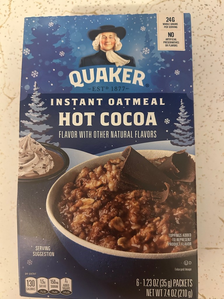 Recently, my cousin did a review on Maple Bacon oatmeal from Quaker. Seeing this posted had inspired me to a review of my own for another seasonal brand of oatmeal. I’m reviewing the Hot Cocoa Oatmeal from Quaker. It’s funny that I almost bought the Maple Bacon oatmeal on Tuesday when I was at Walmart with Mom on her errand run. I picked up the Hot Cocoa Oatmeal at Giant Eagle one morning after working all night. It’s sweet but not too sugary. The chocolate adds a nice flavor to the oats. It gives off Maple and Brown Sugar vibes. I have a few packets left and will finish them before Christmas. Katie, enjoy your Maple Bacon oatmeal. The Hot Cocoa oatmeal gets five stars.