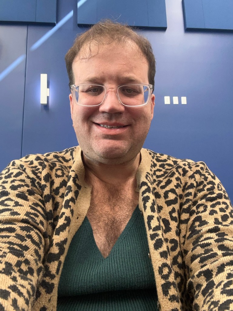 I wowed with my outfit today at the speech contest. Of course, I rocked the trademark cheetah cardigan and a green sweater tank top underneath. Iโve worn this on holidays when weโve had company (Thanksgiving 2022, the last two Christmas Eves, and this past Easter). Maybe Iโll wear the red one when I have dinner with Kevin Thursday night. The cardigan has been worn at other Toastmasters events too and gets a lot of rave reviews.