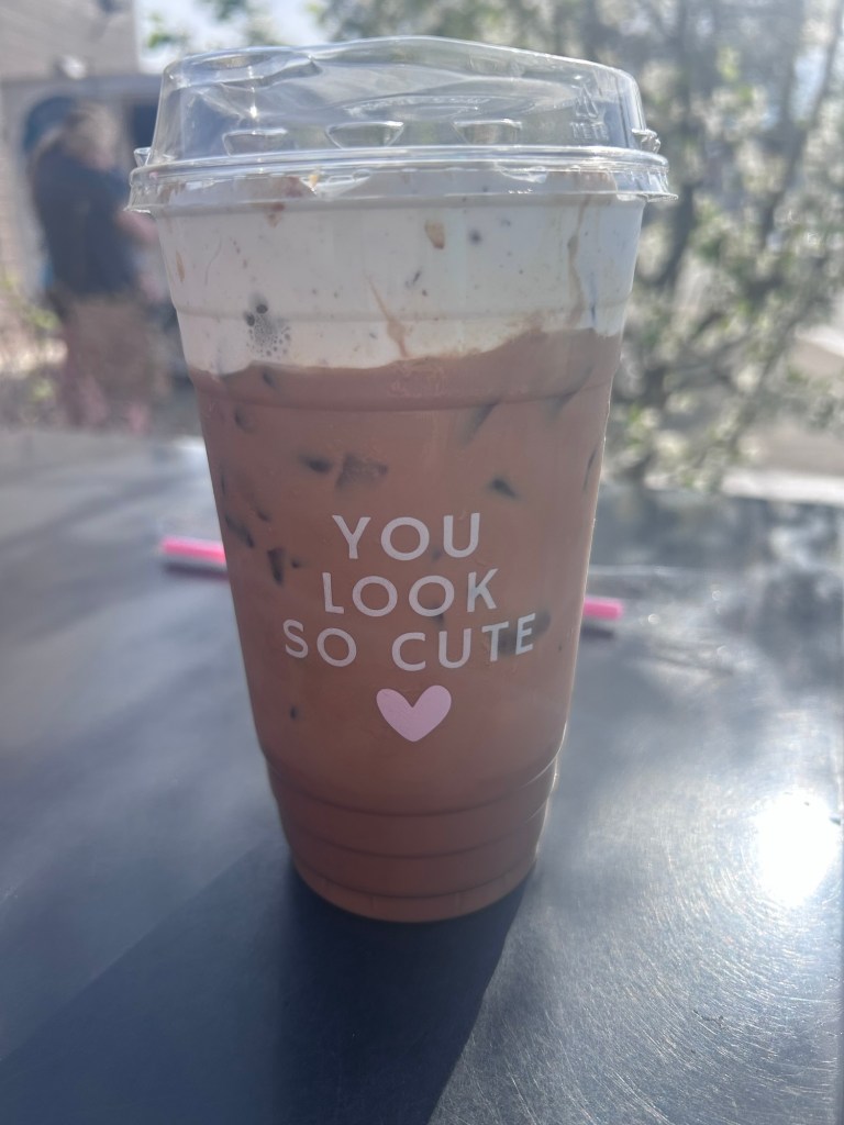 Before the shower, I made a stop at Cutie’s to enjoy a latte. The Mutiny Donuts food truck was parked next door and I was curious to try one of their donuts. Thus, I was well fed as I made my way to the country club. I got an Oreo donut from the food truck and it was very good. I enjoyed the donut with my Cadbury Egg Latte. I continued to drink the cute coffee drink when I was at the shower. Cutie’s Coffee also came with me to Blairsville as I drank my Bananas Foster Latte en route to the speech contest.