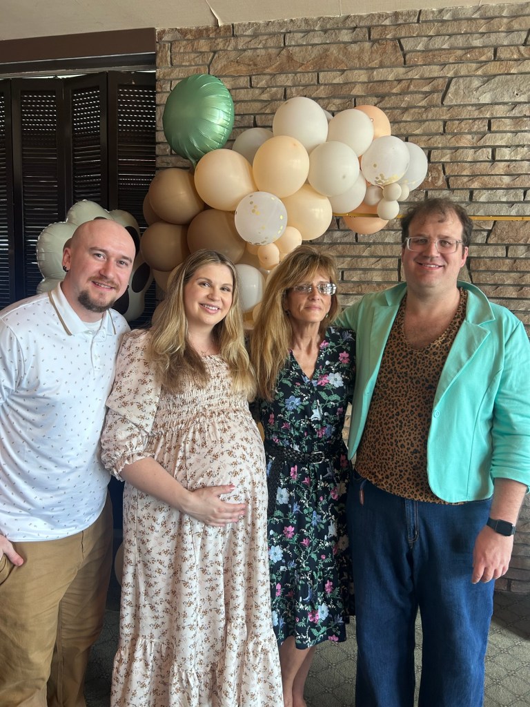 My presence at the baby shower, and my outfit of the day, made Sara’s day. The outfit of the day was a pastel green blazer (which screams Easter) with a cheetah top. Wide leg jeans and Skechers completed the cute ‘fit that I was happy to put together for this wonderful event.